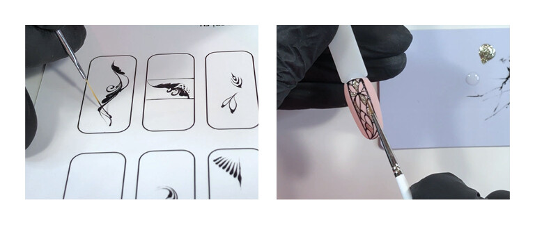 zoom-созвон для отработки дизайна в режиме реалнього времени. Постановка руки, движение кисти, компановка элементов. 4-5 часов практики, как на очном курсе нейл-арт.